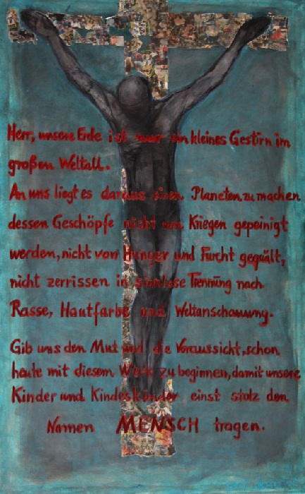 Gebet der Vereinten Nationen | Kollage -Kohle- Acryl auf Leinwand | 160 cm x 100 cm
