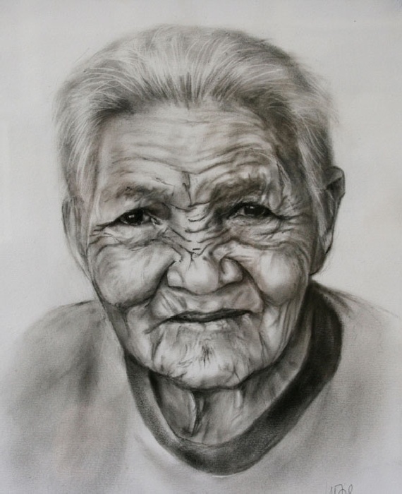 Die alte Thai | Kohlepuder | 20 cm x 30 cm
